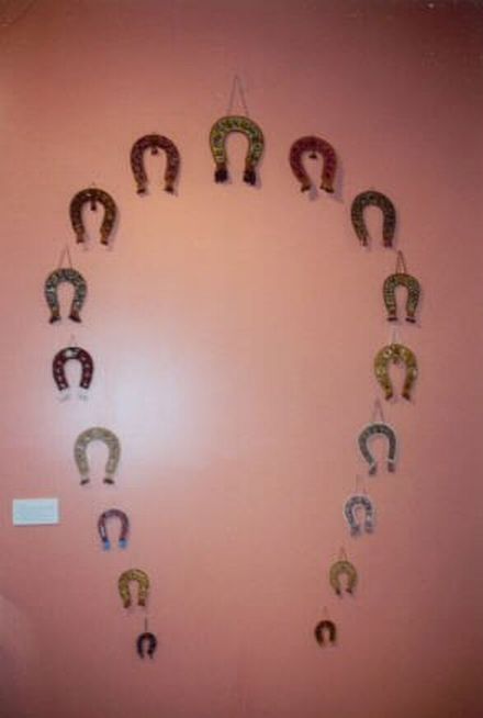 These are heart-shaped pincushions displayed in the shape of a heart.